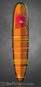 Very buoyant, so paddles well on small and medium days. Planes superbly and is extremely stable at speed. So much so that it sacrifices some manuevarability unless you move the fin forward in the slot and/or get a fin with less sweep. Maybe the harder rail plays a role here...