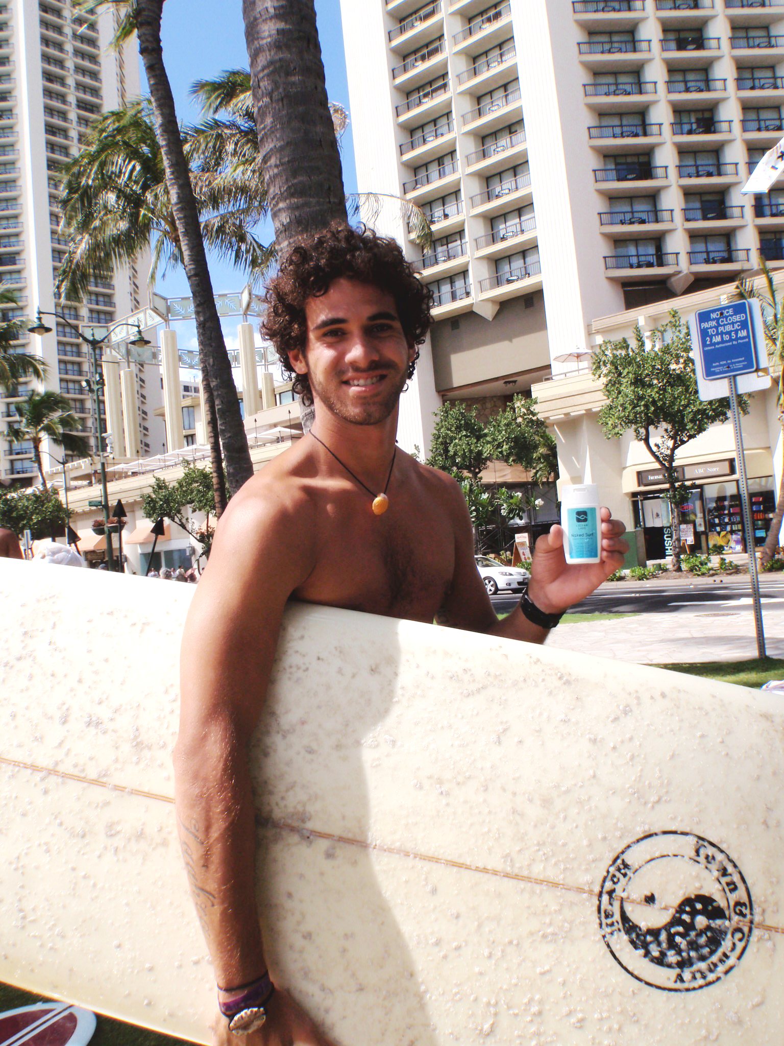 Chris, frustrated with board rash and looking for a solution, took to the lab and help create “Naked Surf”.